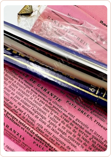 • Lâmina de Aço Carbono (13/16” de largura): Proporciona um barbear extremamente próximo e confortável, graças à sua moagem fina e ponta arredondada.